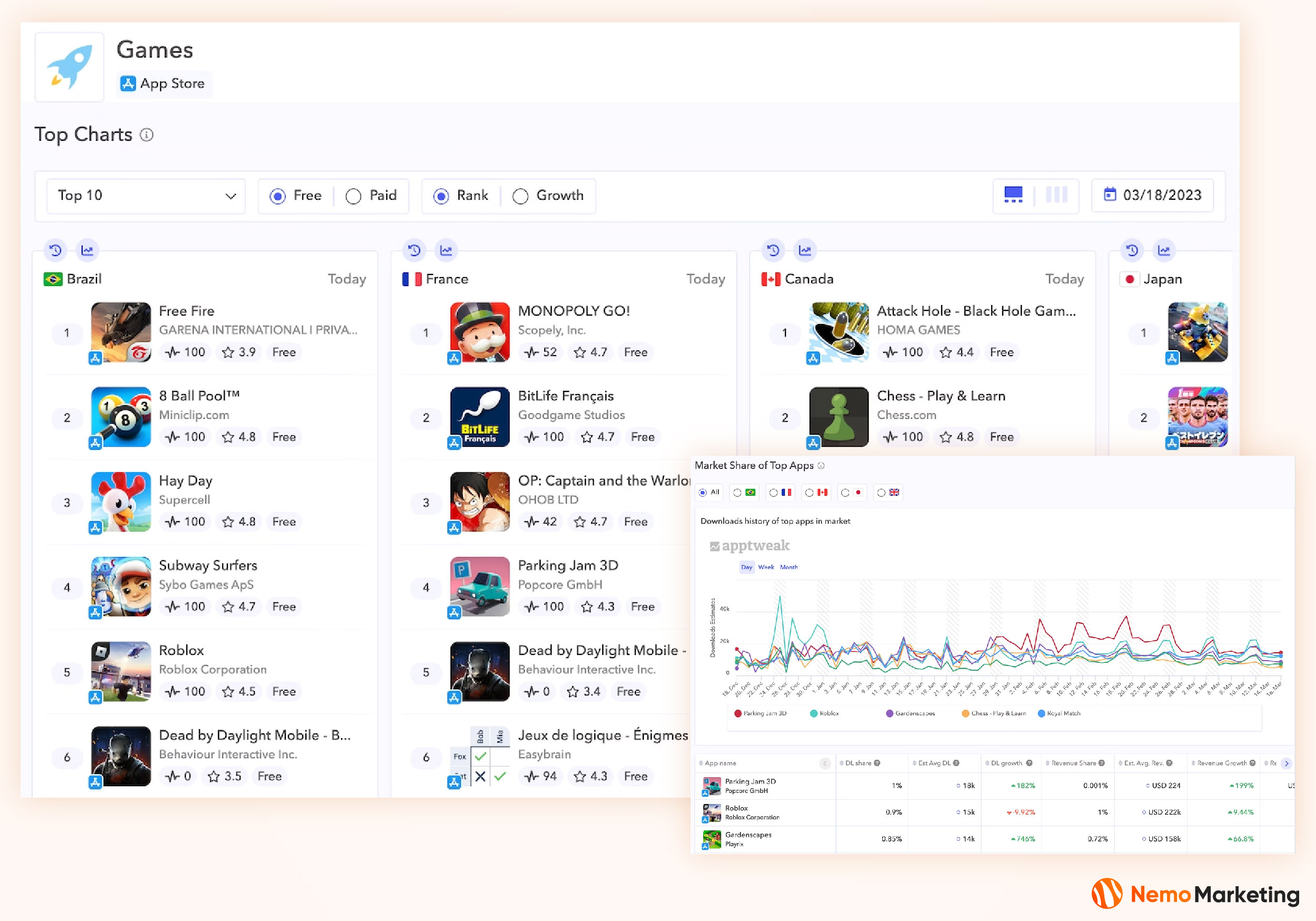 Strategic Planning: AppTweak allows you to review the entire market to identify competitors within your category. From here, you can position your app and customize strategies for each country.