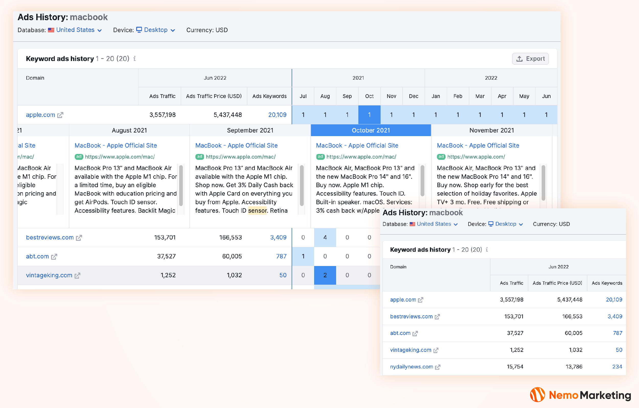 This is a tool that allows you to explore competitors in a creative way. It helps you answer many questions you may have about your competitors, such as: